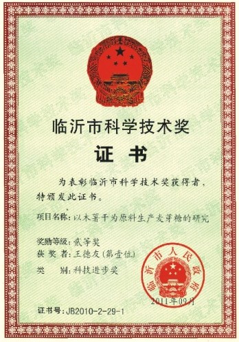 日前,集團自主開發(fā)的《以木薯干為原料生產(chǎn)麥芽糖的研究》項目獲2011年度臨沂市科技進步二等獎。