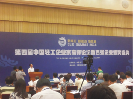 612日,由中國輕工業(yè)聯(lián)合會主辦的“第四屆中國輕工企業(yè)家高峰論壇暨輕工百強企業(yè)頒獎盛典”在北京京西賓館舉行。本屆論壇以“新思路、新驅(qū)動、新常態(tài)”為主題,來自政府部門、協(xié)會、媒體、企業(yè)及各地方輕工業(yè)組織共500余人參加了會議,新浪網(wǎng)等網(wǎng)絡(luò)媒體進行了全程報道。